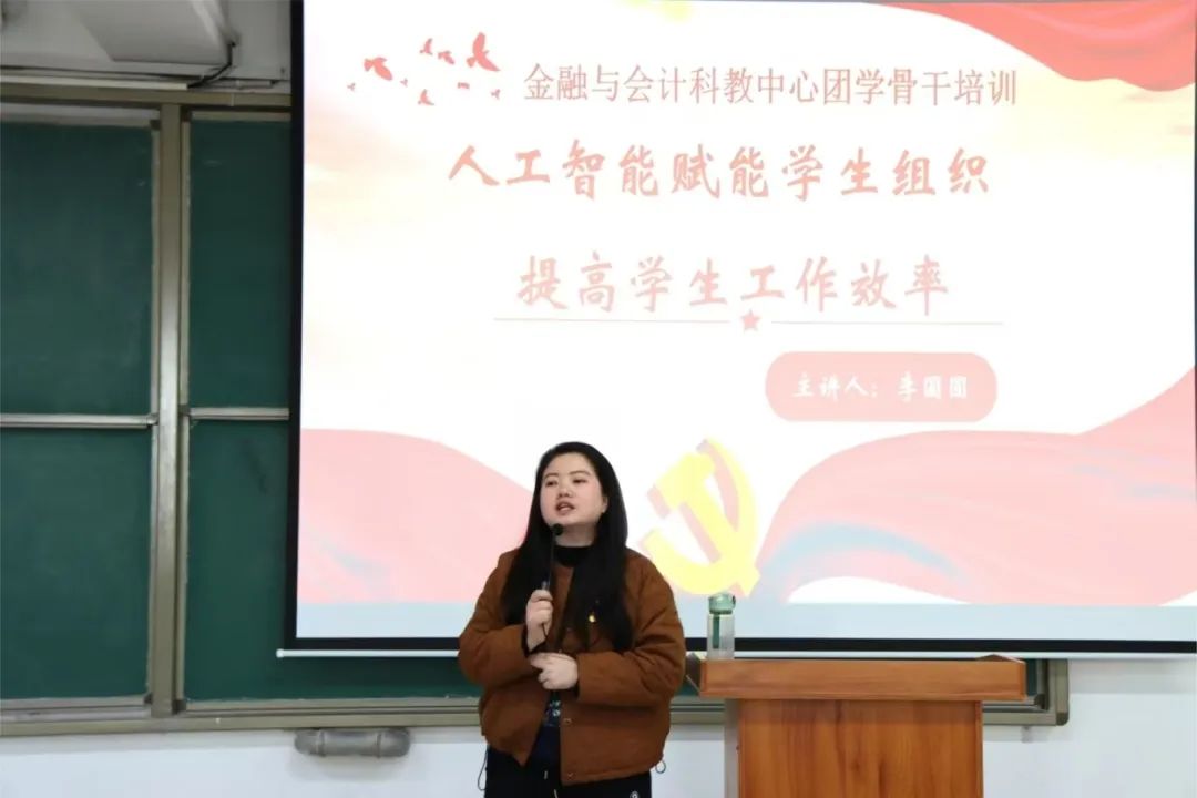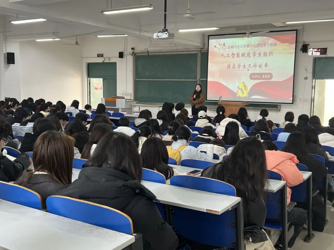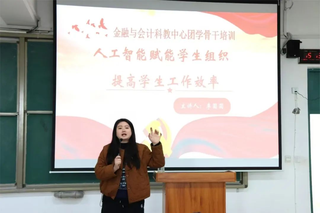 为提高同学们的工作效率,更好地开展后续工作,金融与会计学管中心于2月27日开展了骨干培训。主讲人李圆圆老师展示了人工智能在辅助工作方面的优越性,鼓励学生加强对AI工具的认识和学习。