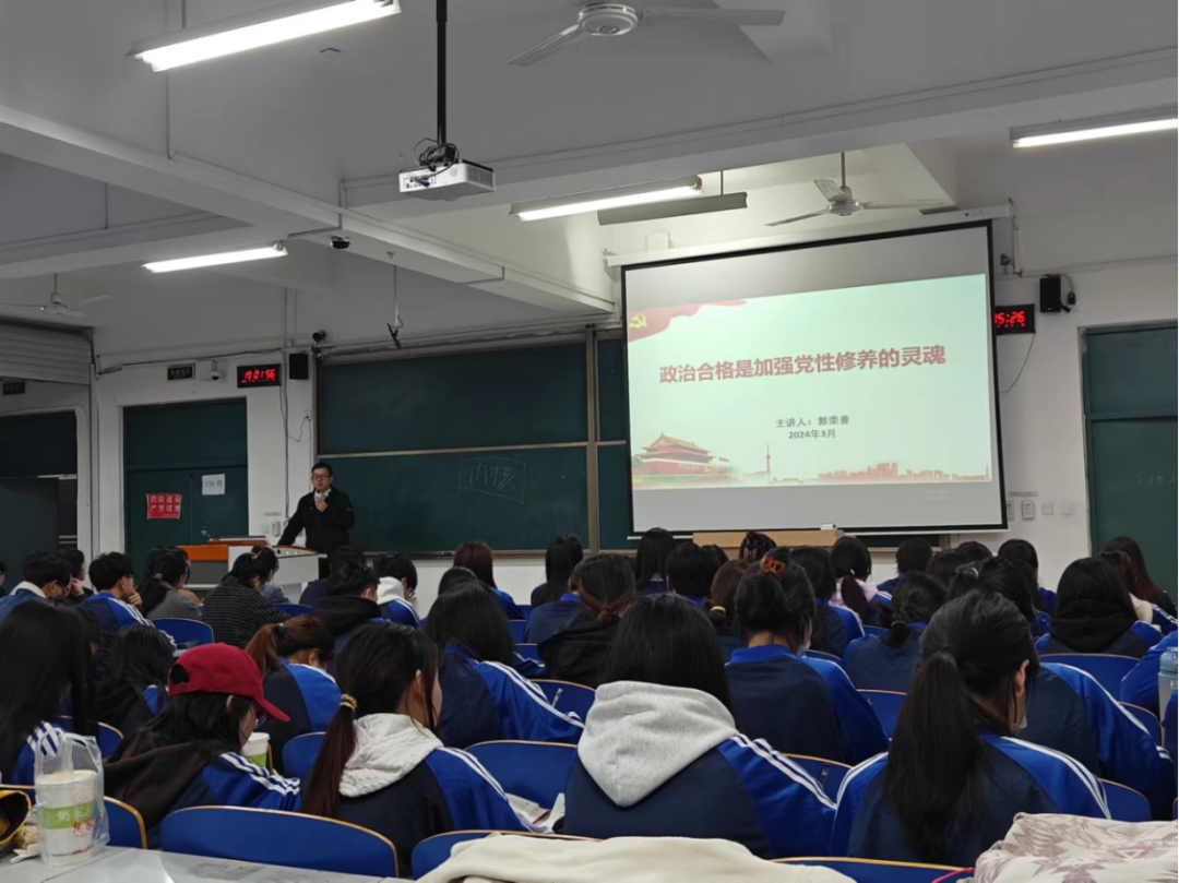 3月18日,郭荣普老师在古天乐太阳集团城408教室开展了“政治合格是加强党性修养的灵魂”为主题的党课。郭荣普先对党的历史、基本知识和要求进行讲述。他要求学生通过学习、改进和锻炼,来磨砺自己的品格和意志,保持政治上的坚定性和思想道德上的纯洁性。同时,他提出作为党员的要求:始终把党和人民放在心中最高位置,积极配合学校和班级的工作;做一个一心为公、一身正气,为人民群众办实事、解难题的人。