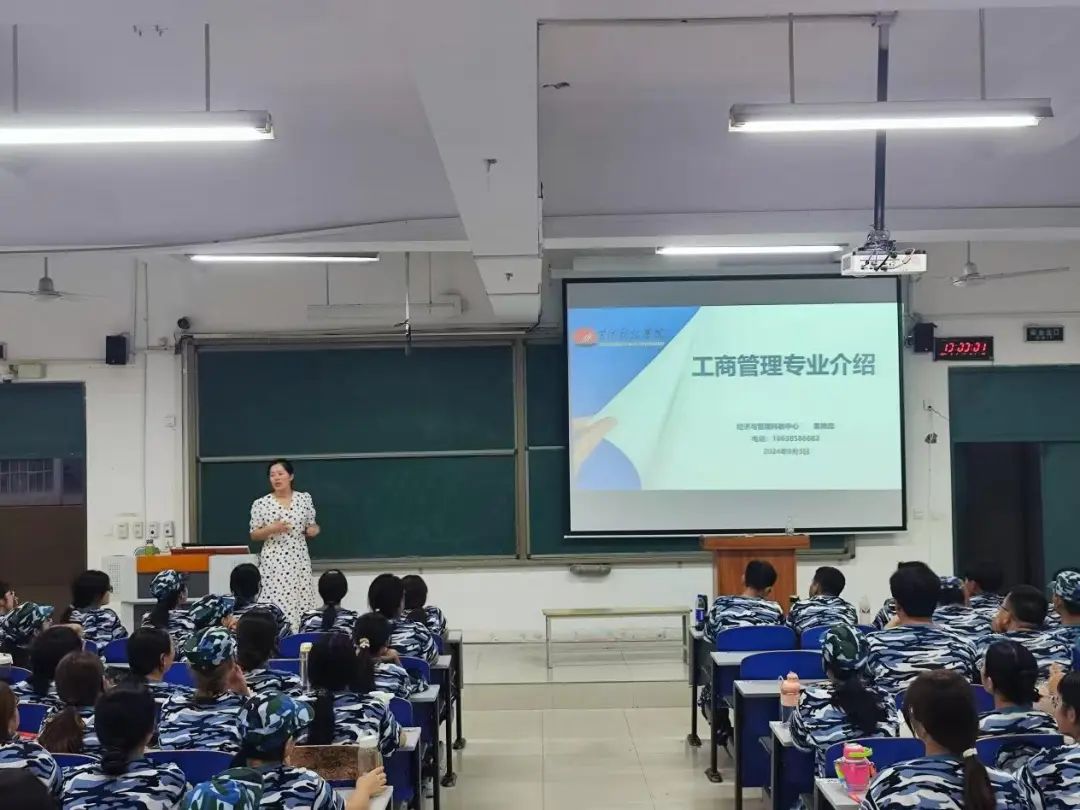 董艳蕊老师凭借深厚专业知识和丰富教学经验,为24级工商管理新生介绍专业发展情况,强调重要性并讲解学习方法和实践意义。