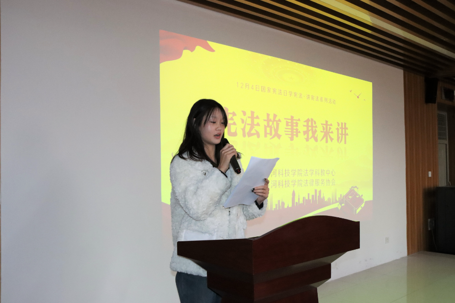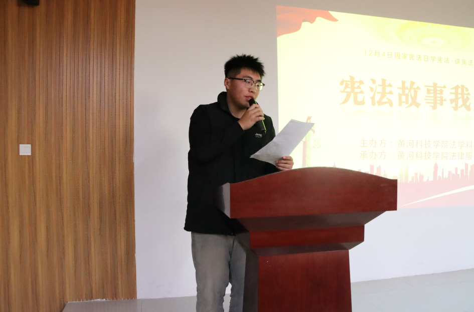 第二个环节开展宪法故事我来讲活动。第一个上场的选手是来自24级法学一班的王鹏博,他以校园表白墙的案例出发,结合我国宪法相关规定,生动诠释了宪法对于每个人的重要意义。随后,仝欣瑶、万湘等选手也结合自己的精彩宪法故事,在台上深情讲述对于宪法的认识和理解,让在场的同学们深受感染,深刻体会到宪法为我们生活保驾护航的重要作用。