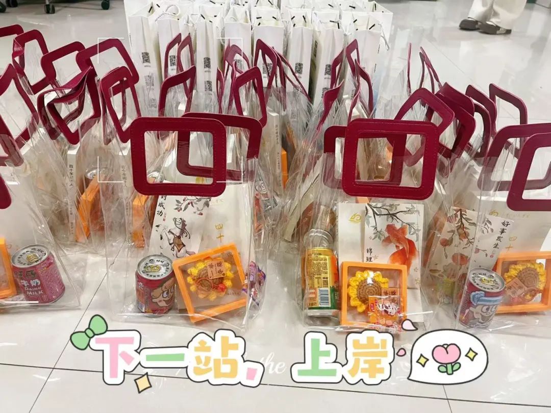 在发放礼物环节,老师们早早地准备好了承载着满满心意的礼物。从象征着一举夺魁的向日葵花,心想事成的橙子,到零食旺仔牛奶,棒棒糖,再到老师们亲手写的贺卡,以及建校四十周年的校友书籍,每一份礼物都凝聚着老师们的关爱,为同学们增添了一份心理上的慰藉与鼓励,老师们亲手将礼物递到学子的手中,并送上真挚的祝福。