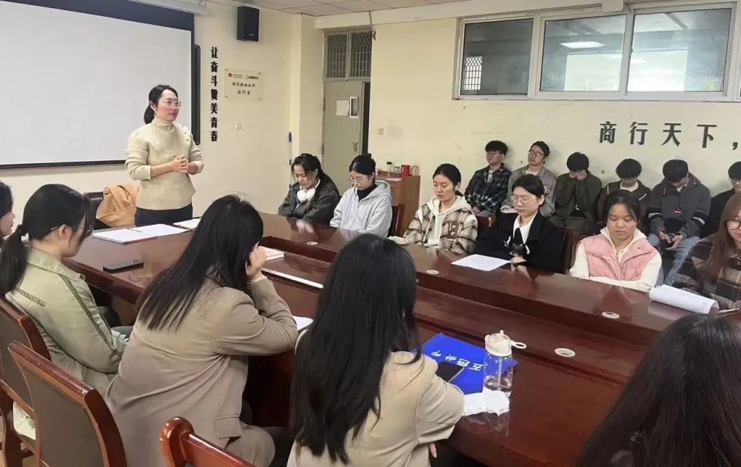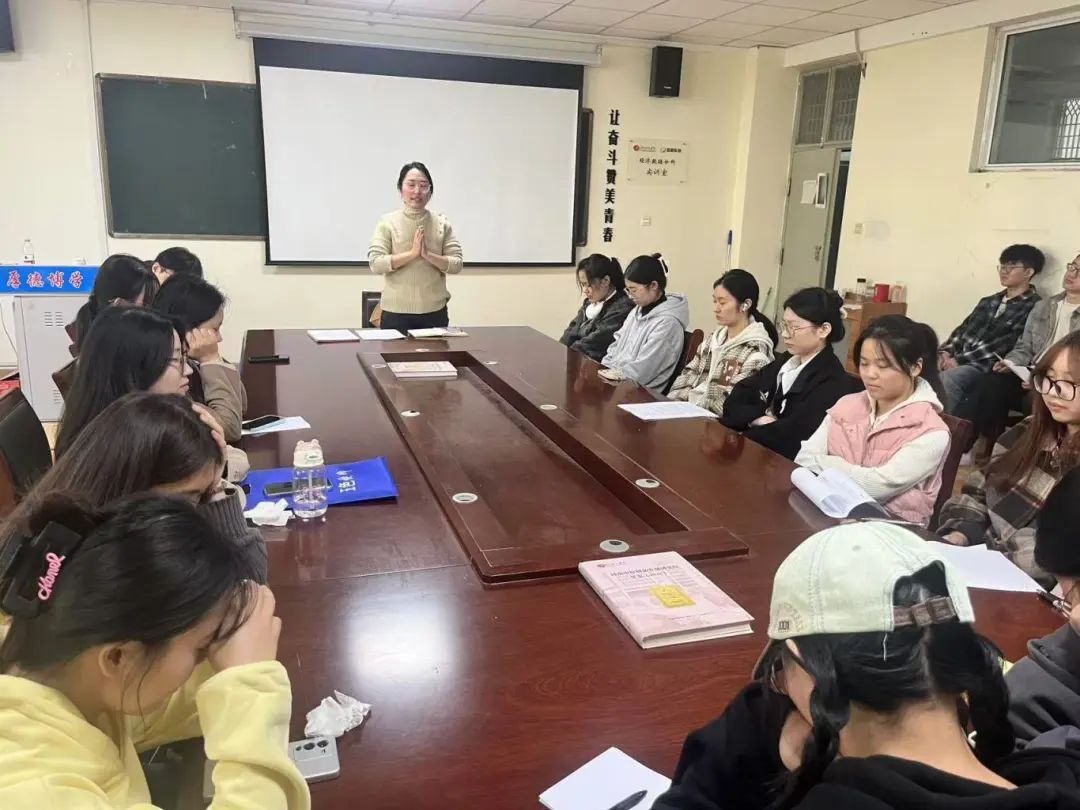 学业导师组建“法考教研小组”,深入研究近五年真题,精准提炼高频考点融入日常教学;辅导员发挥思想引领与管理优势,建立 “法考备考档案”,开展10余场主题班会、组织内部模拟考试,全方位助力学生备考。
