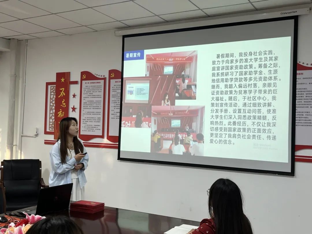 活动伊始,优秀资助宣传大使代表依次上台,以鲜活案例与真挚感悟分享工作心得。他们讲述深入班级、社区开展政策宣讲的实践故事,从初期政策解读的困惑到后期精准服务的成长,字里行间传递着“让每一位学子知晓资助温暖”的初心。这些来自一线的实践经验,为新一届大使提供了可借鉴的工作范式。
