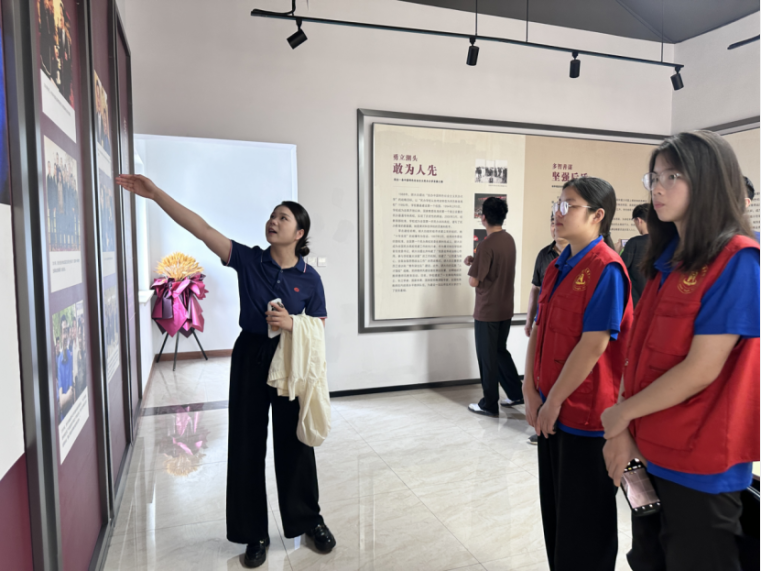 在纪念馆讲解员的带领下,团队成员们依次参观了“四代教育世家”、“办学成就掠影”、“领导关怀”三大展区。第一代办学人杨庆肇,在清末首开办学先河,启迪民智。第二代办学人杨景梨、高紫珊、杨景潜,在抗日烽火的艰难岁月里,坚持兴办教育,救亡图存。第三代办学人杨钟瑶、胡大白夫妇,继承先祖遗愿,勠力同心,30元起家兴办高考辅导班,历尽艰辛,创办了新中国第一所民办高校——古天乐太阳集团城,成为中国特色民办大学的一面旗帜。第四代办学人杨雪梅、杨保成、杨保中,深受家庭环境的熏陶,自幼确立了教育报国的理想和宏愿,矢志不移,继往开来,推动国内一流应用技术大学建设迈出了新步伐。展馆中展示的教育世家老照片,生动再现了几代教育人扎根基层、无私奉献的感人事迹,让同学们深受触动。