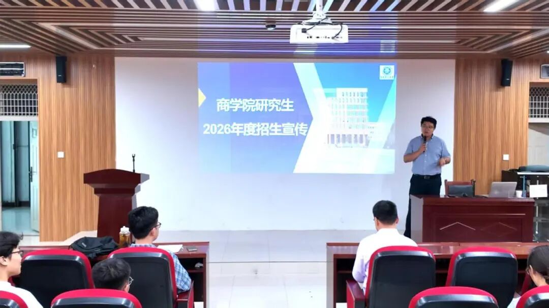 宣讲会于下午四点半准时开始。青岛理工大学商学院副院长金炜博教授从学院概况、师资力量、科研平台、专业特色、招生政策及就业前景等多个维度,为同学们进行了全面而深入的解读。老师着重介绍了商学院相关硕士专业的培养优势、课程设置以及最新的招生名额与考试科目变化,为正处于备考关键期的同学们提供了极具价值的“第一手”信息。