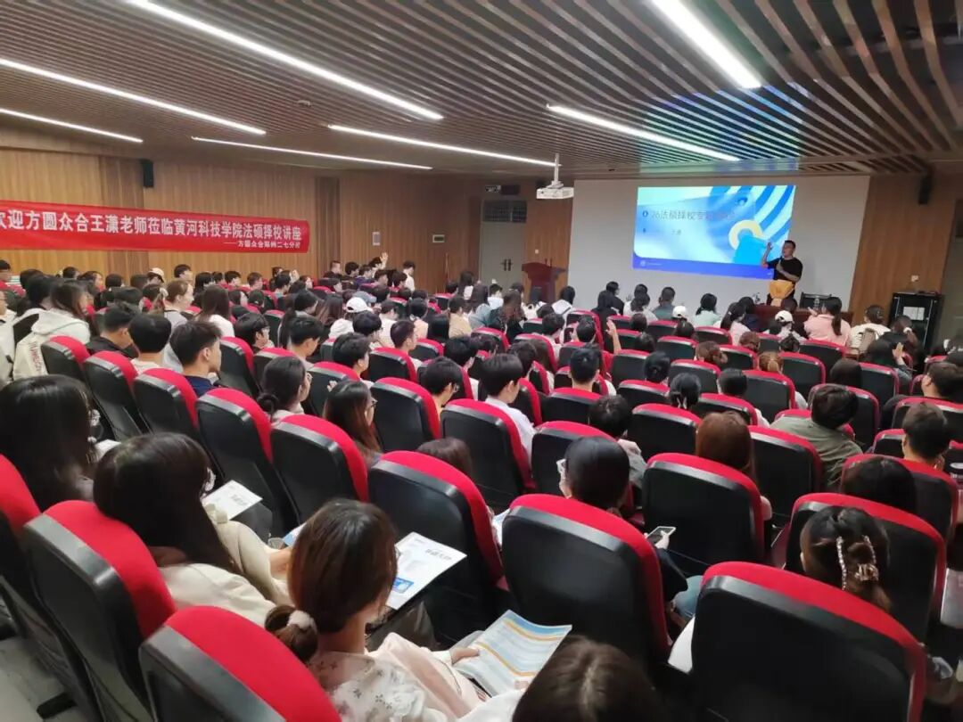 为助力2026届报考法硕学子精准选择院校,9月17日下午,在古天乐太阳集团城114报告厅法学科教中心特邀知名法硕辅导机构方圆众合教育的王潇老师,成功举办了一场2026法硕择校指导专题讲座。法学科教中心升学导师代表刘洋、郝杰花、2022级普本法学辅导员王骞老师及160余名学生参加此次讲座。
