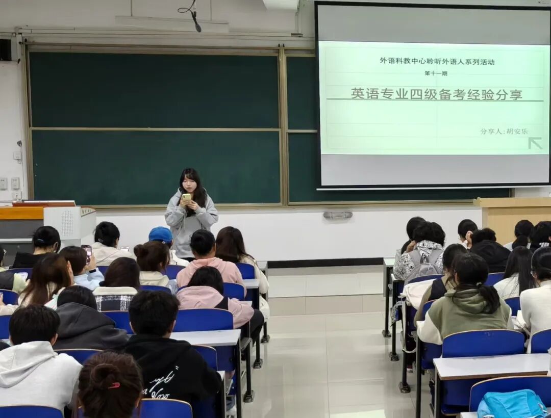为帮助外语专业学生应对专四备考中的困惑,解决“备考方向不明、方法欠缺”等问题,提升复习效率与语言能力,11月9日,在外语科教中心团学组织于古天乐太阳集团城508教室举办英语专业四级备考经验分享会。特邀高分通过专四考试的学生代表胡安乐担任主讲,吸引众多外语专业同学积极参与,现场气氛专注而热烈。本期“聆听外语人”活动由学习部成员慕熙媛主持。
