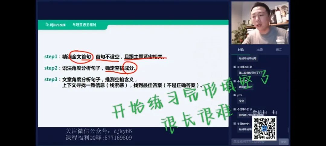 英语相信大家也都知道,最重要的就是背单词,从你开始准备考研就每天坚持背单词,按照自己的计划一定不要中途放弃,感觉单词不重要,一定多背多记,然后刚开始写英语阅读的时候可以先跟着唐迟的阅读理解,主要自己做错的题听一下老师的讲解,不用每一个题都听讲,这样的话是比较浪费时间的,阅读理解前期建议大家一天练一天就行了,不用着急刷题,因为真题是有限的,而且英语二是从2010年才分出来的,所以大家前期可以先拿英语一练一练手,然后后期再开始练英语二。完形填空的话,性价比不高,所以不建议大家跟着老师学习自己抽时间练练就行了,如果感觉自己没有思路不会做的话,也可以听一下易熙人老师的讲解。翻译的话比较推荐唐静老师的翻译,唐静老师会逐字逐句给大家进行翻译讲解很容易上手。大作文和小作文我都是跟着石鹏磊老师的,小作文比较简单,跟着石鹏磊老师的课一边听一边练,到后期几乎下笔如有神;大作文当时我也懒得换老师了,他讲的也很好,我就把自己写的作文背了一背后期总结并背诵了自己的作文模板,然后也买了石鹏磊老师的33篇,写作文的时候一定要字迹工整,字好看,很加分的。