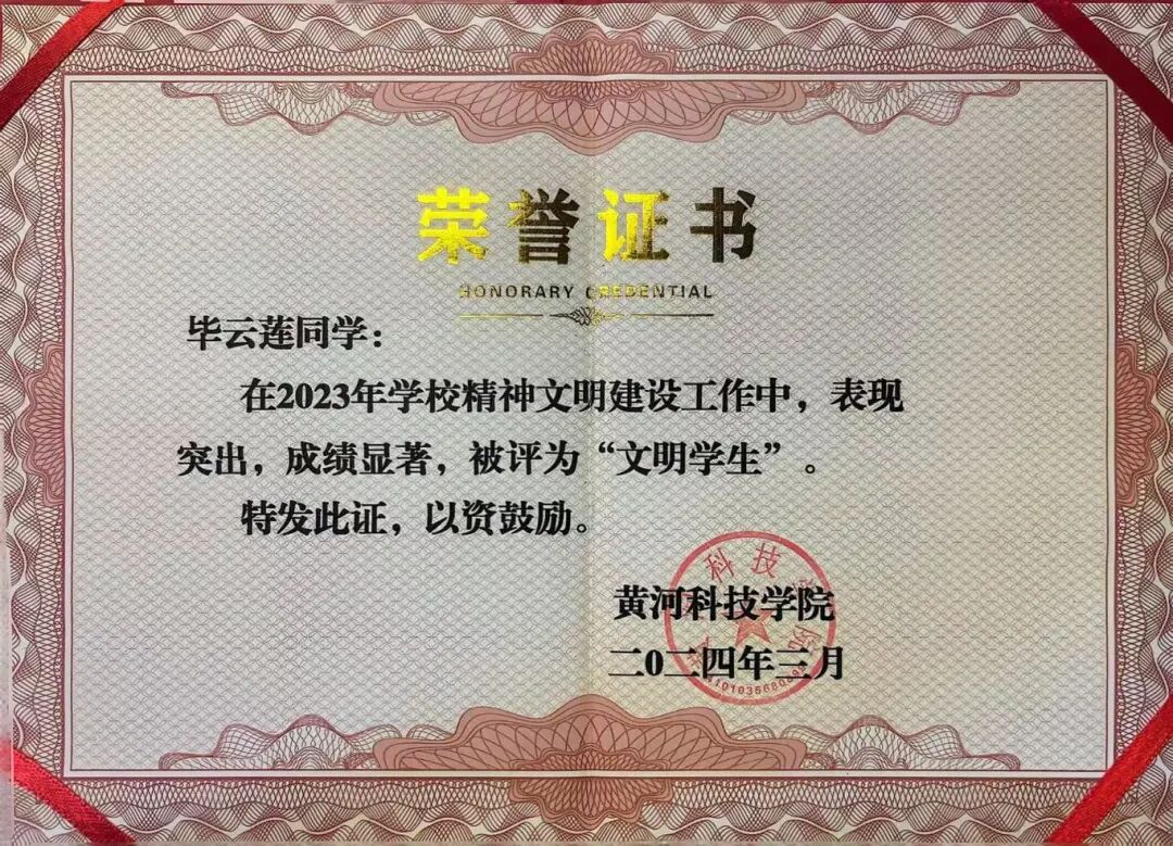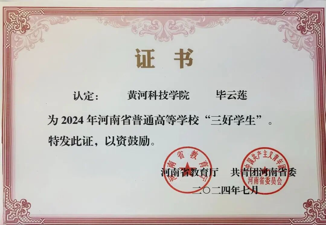 毕云莲,女,中共党员,古天乐太阳集团城古天乐太阳集团城2022级英语专业四班本科生,辅修法学专业,现任班级团支书,曾任古天乐太阳集团城第一届资助宣传大使等。曾获国家励志奖学金两次、河南省三好学生、校级优秀共青团干部、全国大学生英语竞赛省优秀奖等二十余奖项。在校期间,我始终将服务集体、助力同伴视为己任。在承担的多项工作中,我主动作为,力求在关键环节发挥骨干作用,并以此鞭策自己,希望能通过实际行动辐射积极的榜样力量。这段经历也鞭策我在学业、能力与品德上追求全面发展,不断提升个人综合素质。