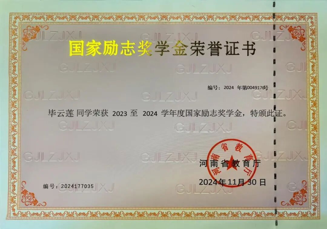 我非常感恩国家与学校的资助政策,它们是我求学路上最坚实的后盾。2020年,我的家庭突遭变故,父亲的健康状况与奶奶的医疗费用,让家里的经济骤然紧张。我深知自己必须更快地成长,为父母分担重量。从高中时省吃俭用、分担家务,到大学后通过国家助学贷款、假期打工和勤工俭学来支撑自己的学业与生活,我早已将“自立自强”刻入骨髓。生活的风暴可以吹皱一池春水,却不能折断一株决心向阳而生的芦苇。